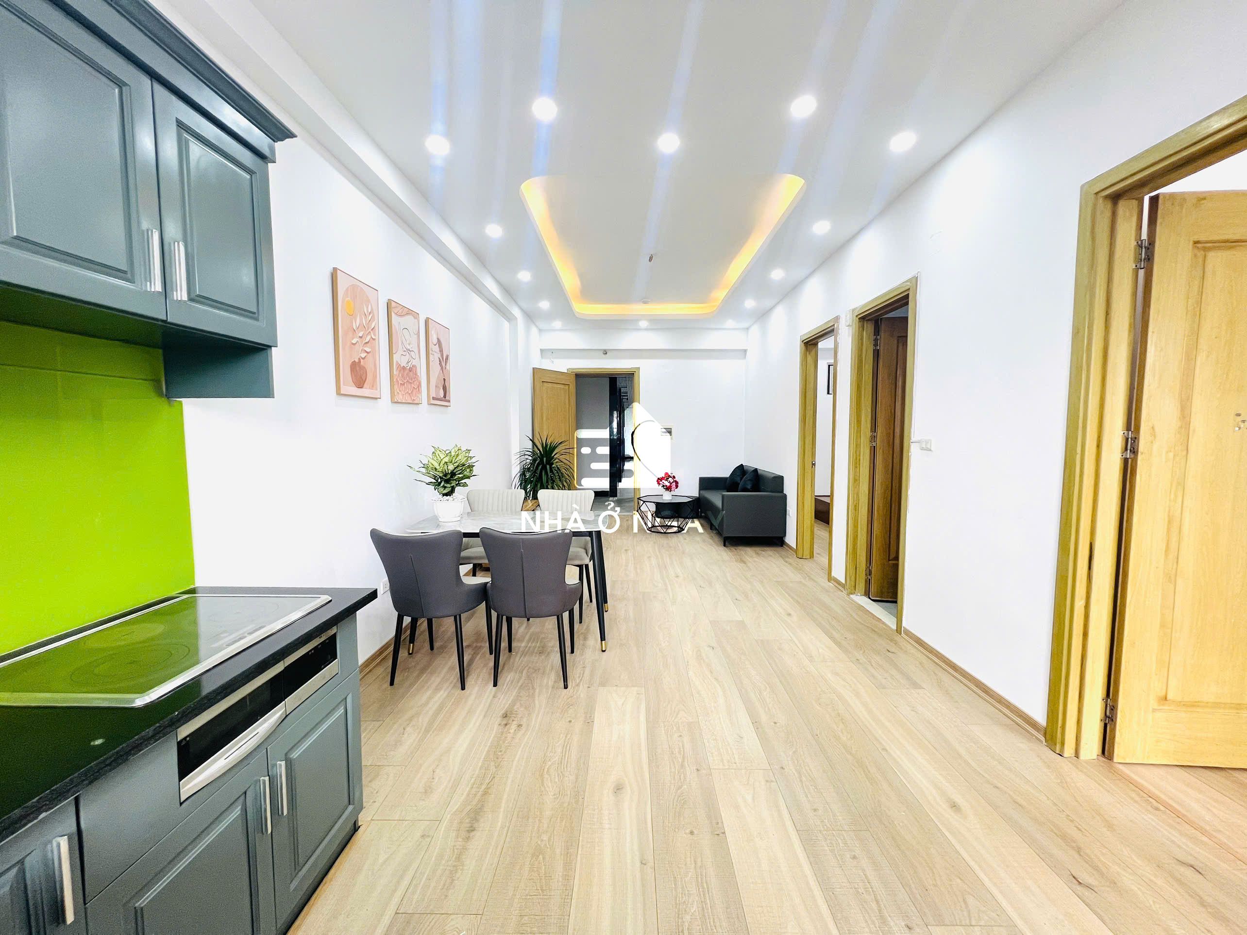 Sàn gỗ, trần thạch caoBộ bếp từ – hút mùiBàn ăn, sofaGiường – tủ hai phòng ngủKệ tivi