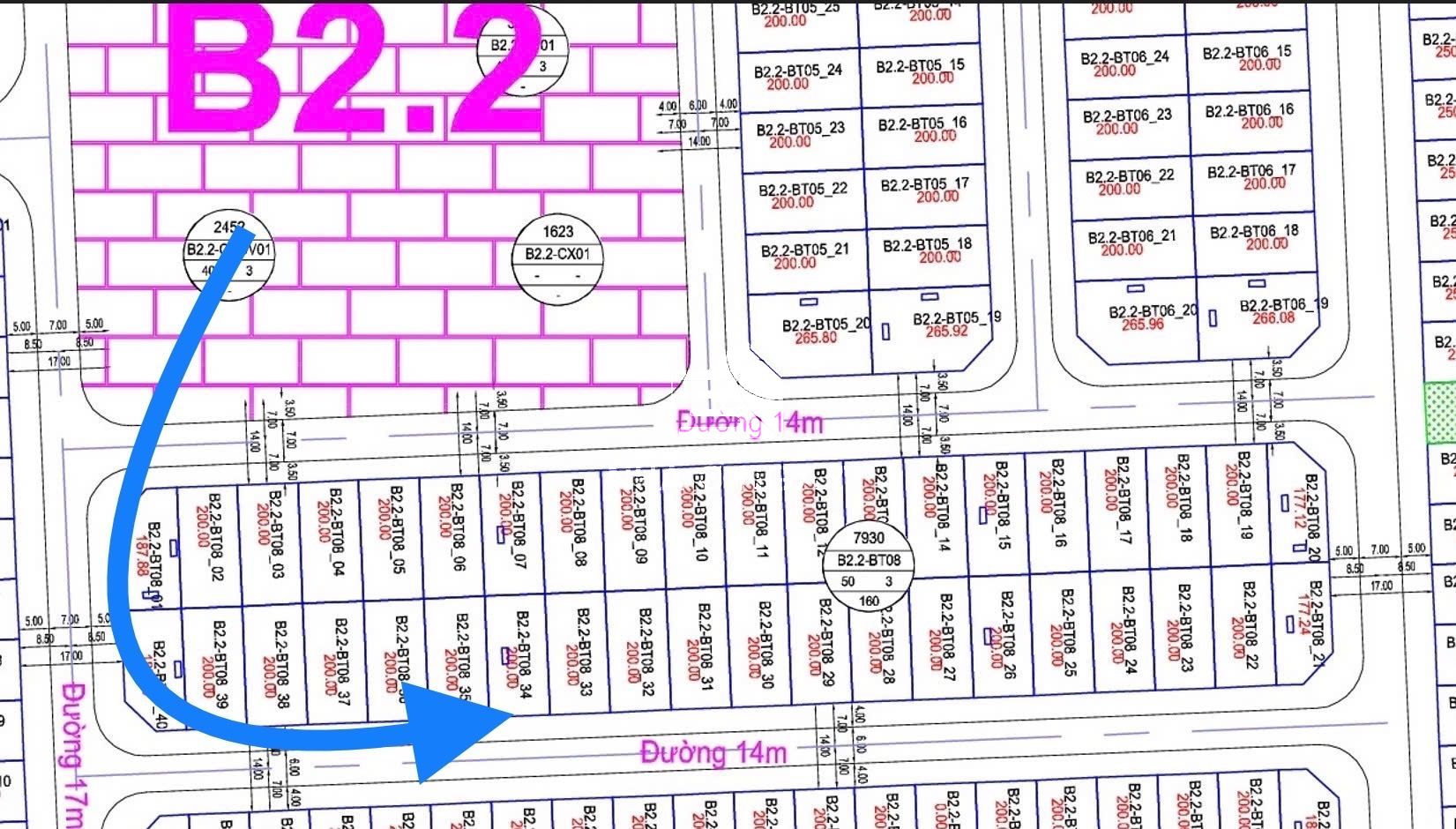 Khu: B2.2 – BT08Diện tích: 200m²Hướng: NamMặt đường: 14m